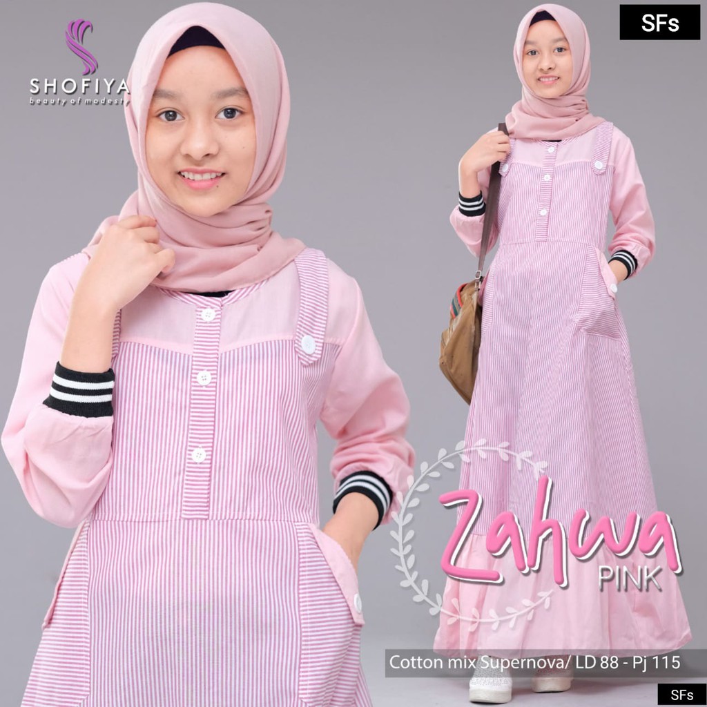 Gamis Anak Remaja Kekinian Motif Garis Zahwa Dress Shopee Indonesia
