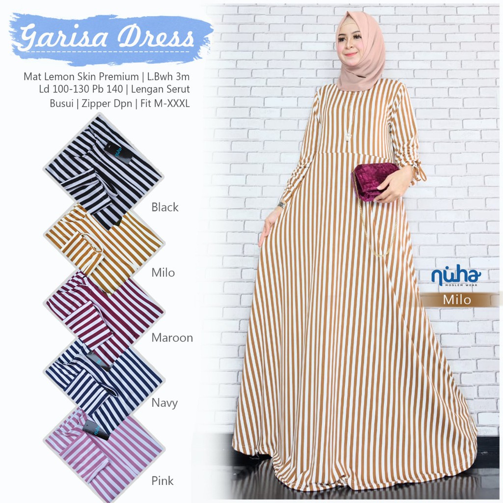 Gamis Garissa Dress Maxy Lemon Skin Melar Adem Tebal Motif Garis