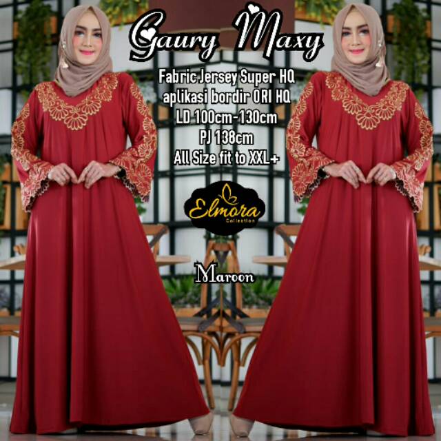 Dress Gamis Maxy Gauri Maxy Bahan Jersey Super Bordir