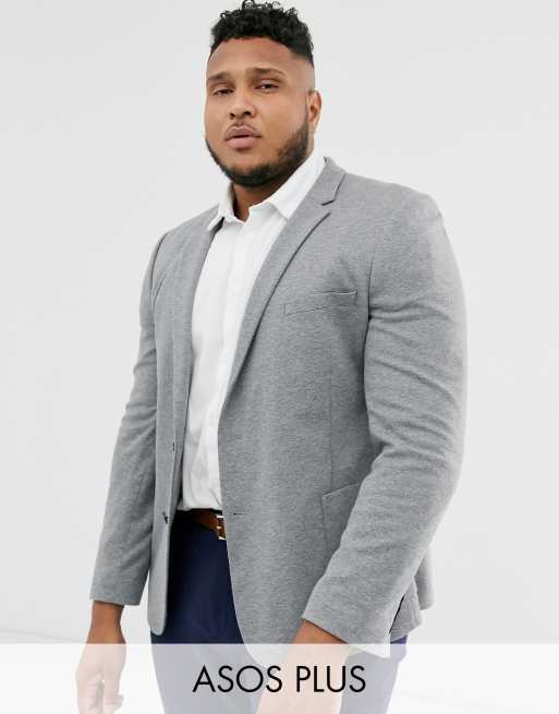 (ASOS DESIGN Plus super skinny jersey blazer in gray)
