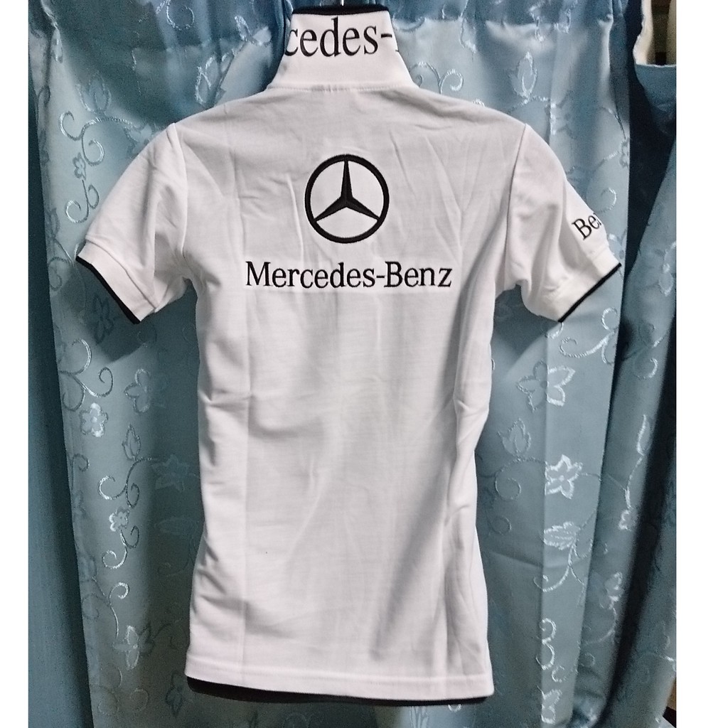 Mercedes Benz Embroidery Polo T Shirt Embossed Collar Printed