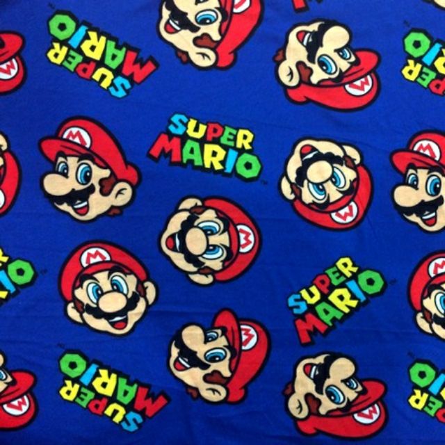 1 Meter Cotton Fabric Jersey Knit Super Mario On Royal Blue