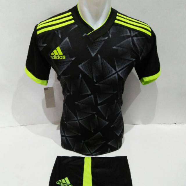 Ad 08 Hitam Hijau Stabilo Baju Olahraga Jersey Bola Setelan