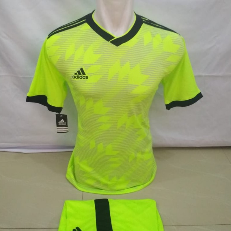 Setelan Kaos Futsal Bola Adidas Ad08 Hitam Stabillo Hijau