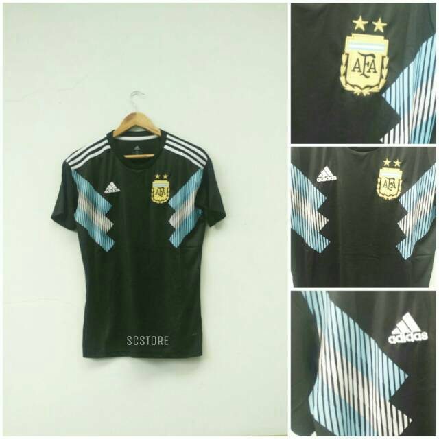 (Terbaru Rusia World Cup Jersey Baju Argentina Away Hitam Piala Dunia 2018 GRADE ORI - Jersi)