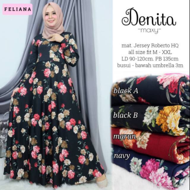 Gamis Jersey Roberta Motif Bunga Mawar Gamis Jersey Umbrella Motif
