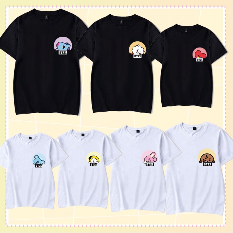 Bt21 Kaos T Shirt Longgar Casual Pria Lengan Pendek Motif Print